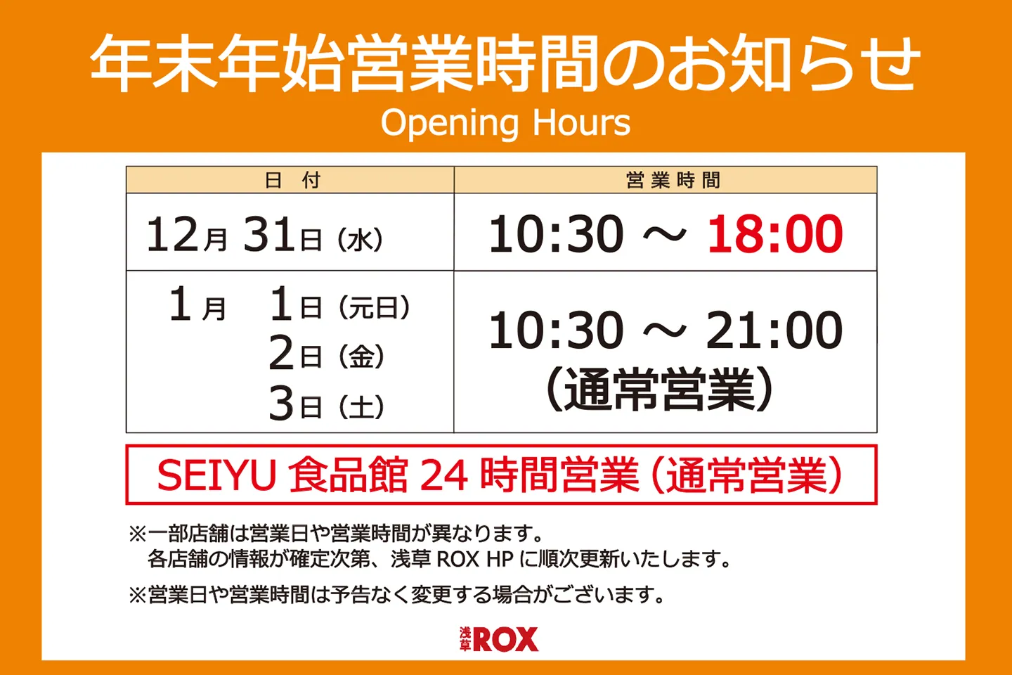 年末年始営業時間のお知らせ
